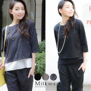 <授乳服・マタニティ・トップス>スタイリッシュ・レイヤード風ブラウス